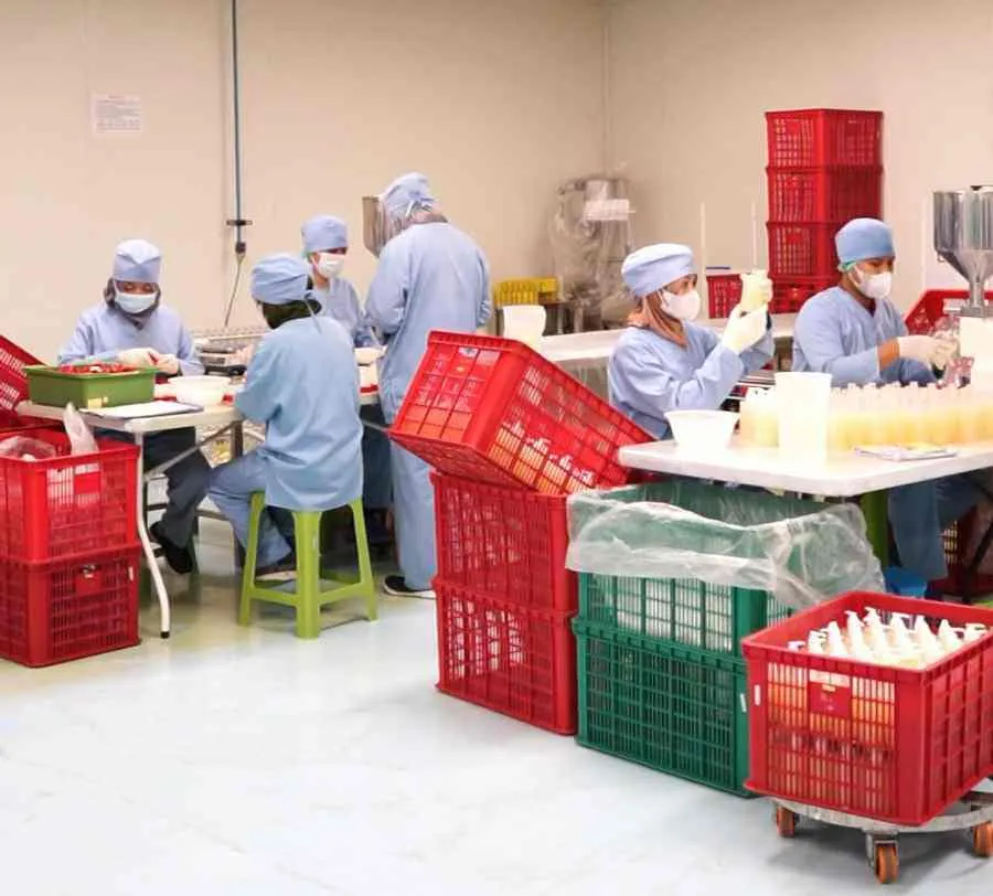 Setelah formula disetujui, pabrik melakukan produksi massal dengan mesin modern sesuai standar GMP (Good Manufacturing Practice).